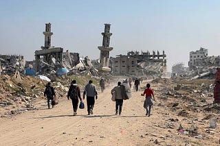 Gaza grew smaller behind the window as the bus pulled away—a blur of dust, tents, and broken walls.